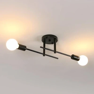 Industrial design: this ceiling lamp adopts double parallel design concept, the smooth lines can well match the design style of your room, the arm of the ceiling light can be adjusted according to personal preference Ceiling light parameters: Size: 37.5 X7X13.5cm, Style: Simple industrial style, Power: Max 60W, Colour: Black, Voltage: 220-240V, Material: Metal, Base type: E27 base, Number of bulbs needed: 2 (bulbs not included) Material: This chandelier black is made of corrosion-resistant metal, sturdy and durable, has a baked enamel finish and is very easy to clean on a daily basis Easy to install: The 2 arms of this modern ceiling light are pre-wired, just install the arms to the chassis, the installation steps are very simple, but it is best to install under the guidance of professionals Applicable scene: 2 light sputnik ceiling light can be used either as a wall lamp or as a ceiling lamp, you can choose according to the decorative style and personal needs. Suitable for living room, dining room, bedroom, corridor, study, office, bar, cafe, etc
