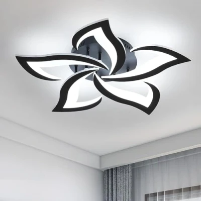 [Specification]: Dimensions of ceiling light lamp: 60CM x 8CM; Power: 60W; Lumens: 6500lm; Colour temperature: 6500K, cool white light; Colour: black; Operating voltage: 220V-240V; LED irradiation area: 10-25 m². [Creative Design] Fashionable petal shape, simple and beautiful, full of artistic and three-dimensional sense, and the lighting creates a warm atmosphere. It is not only suitable for home lighting, but also a perfect choice for interior decoration. [Energy Saving]: Built-in LED light source. 6500LM luminous flux, high brightness and low power consumption, energy saving up to 84%, average life 50,000 hours. [High Quality Material]: The ceiling light consists of a metal base and an acrylic lampshade. The metal base is made of high quality lamp body with painted surface, corrosion and rust resistant, durable; acrylic lampshade, high light transmittance, uniform brightness, easy to clean. [Widely Application]: This 60W modern led ceiling light, Suitable for all kinds of indoor lighting. Perfect for living room, dining room, bedroom, office and other places.