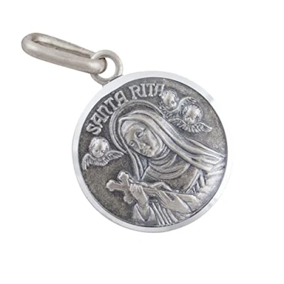 Rita of Cascia Saint Rita Small Pendant 925 Sterling Silver Surface: matte/polished, diameter: 12 mm, eyelet: approx. 3.5 x 2.5 mm, weight: 1.2 grams, stamp: 925 Includes black cotton ribbon, gift packaging and jewellery polishing cloth made from 100% cotton This pendant is made in an Italian factory, AFP jewellery shop, high-quality silver jewellery in different styles