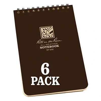 Rite in the Rain Weatherproof Top Spiral Notebook, 4" x 6", Brown Cover, Universal Pattern, 6 Pack (No. 446L6)