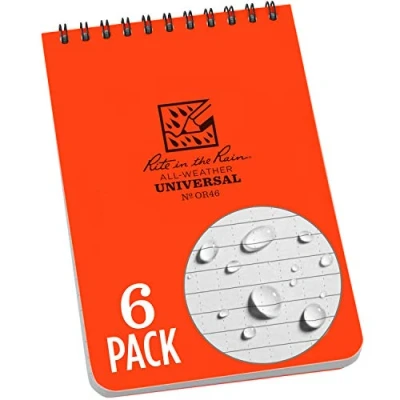 WEATHERPROOF PAPER: 100 pages / 50 sheets per pocket notepad. All-weather paper won’t turn to mush when wet and will repel water, sweat, grease, mud, and even survive the accidental laundry mishap. Make sure your pocket notebook stays RIGHT in the Rain. WIRE-O BINDING: Tough impact-resistant Wire-O binding won't lose its shape in your back pocket or backpack. Unlike a standard spiral notebook, Wire-O keeps your open pages aligned and intact. WRITE IN THE RAIN: When wet, use a standard #2 pencil or an all-weather pen. Standard ballpoints and permanent markers will work when paper is dry. Water-based inks will bead or wash off Rite in the Rain Paper. WATERPROOF NOTEBOOK COVER: Polydura material creates a tough but flexible outer shell. Whether you're needing a hiking journal, outfitting your police gear, starting a golf journal, or just keeping a shower notebook, the Polydura cover material will defend your field notes from scratches and stains. RECYCLABILITY: Unlike synthetic waterproof paper, wood-based Rite in the Rain is completely recyclable. Please recycle Rite in the Rain as you would other white or printed papers.
