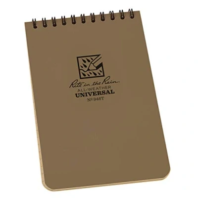 WEATHERPROOF PAPER: 100 pages / 50 sheets per pocket notepad. All-weather paper won’t turn to mush when wet and will repel water, sweat, grease, mud, and even survive the accidental laundry mishap. Make sure your pocket notebook stays RIGHT in the Rain. WIRE-O BINDING: Tough impact-resistant Wire-O binding won't lose its shape in your back pocket or backpack. Unlike a standard spiral notebook, Wire-O keeps your open pages aligned and intact. WRITE IN THE RAIN: When wet, use a standard #2 pencil or an all-weather pen. Standard ballpoints and permanent markers will work when paper is dry. Water-based inks will bead or wash off Rite in the Rain Paper. WATERPROOF NOTEBOOK COVER: Polydura material creates a tough but flexible outer shell. Whether you're needing a hiking journal, outfitting your police gear, starting a golf journal, or just keeping a shower notebook, the Polydura cover material will defend your field notes from scratches and stains. RECYCLABILITY: Unlike synthetic waterproof paper, wood-based Rite in the Rain is completely recyclable. Please recycle Rite in the Rain as you would other white or printed papers.