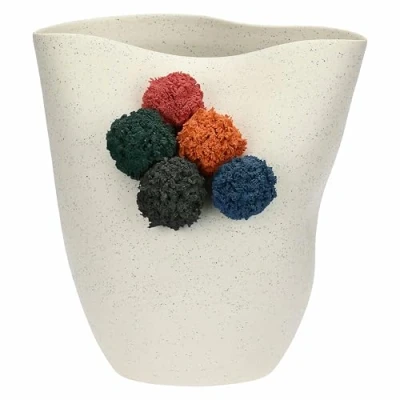 THE POMPOMPON COLLECTION: Fun handmade vases with a sinuous body and colorful grafts that seem to reproduce fabric balls. A striking collection that is a tribute to the materiality. FUN DESIGN AND SYNUSOUS SIZE: Pompompon collection vases feature a sinuous shape and colorful grafts that recall the appearance of fabric balls, creating a unique and playful visual effect. CRAFTED CERAMIC AND RICH MATERICITY: Handmade from ceramic, these vases offer a rich, tactile texture that enhances the beauty of craftsmanship, giving a sense of uniqueness and high quality. PRODUCT CARE: The Pompompon collection S vase with sinuous shapes adds a touch of elegance to your space. Made of ceramic, it should be treated with care: wipe it with a damp cloth and mild detergents, avoiding the use of abrasive sponges that could damage the decor.