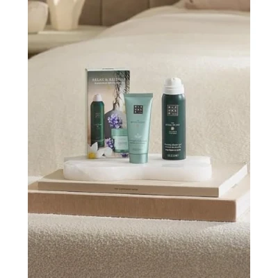 TRAVEL SET CONTENTS: Includes a 50ml shower foam and 40ml overnight body mask from The Ritual of Jing Relax & Restore collection RELAXATION FOCUS: Specially formulated collection designed to promote relaxation and restore inner peace through calming body care SHOWER FOAM: Luxurious foam formula transforms your shower routine into a moment of tranquility with a 50ml travel-sized bottle OVERNIGHT MASK: Rich 40ml body mask works whilst you sleep to nourish and condition your skin throughout the night CONVENIENT SIZE: Perfect travel-sized portions ideal for weekends away or as an introduction to the collection