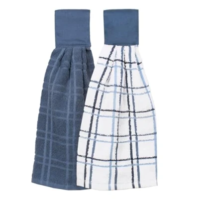 Ritz 100% Cotton Hanging Tie Towels, Federal Blue, Solid & Checked 2 Piece