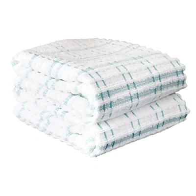 Set includes: 2 100-percent Cotton dew/White checked kitchen towels from the royale collection Made from 100-percent terry looped Cotton; highly absorben Each towel measures 28-Inch long by 18-inch wide Coordinates with Ritz royale collection: includes aprons, kitchen towels, dishcloths, checked kitchen towels, wonder towels, pot holders, Ritz mitz, pocket mitts and Cotton/neoprene oven mitts Machine wash before the first use in cold water; tumble dry low