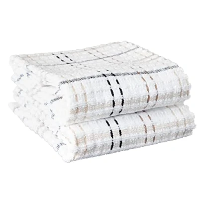 Generously Sized for All Your Kitchen Needs. RITZ Royale Kitchen Towels have been expertly crafted with your kitchen tasks in mind. Measuring a spacious 18 inches by 28 inches (45 cm by 71 cm), these towels provide you with an ample surface area to tackle a wide range of culinary challenges. Whether you're drying dishes, wiping down countertops, or simply tidying up, these towels offer the perfect coverage and versatility for all your kitchen needs. Wave Terry-Loop Technology. Prepare to be amazed by the innovative "wave" terry-loop construction of our kitchen towels. This cutting-edge technology has been specially designed to revolutionize your kitchen experience. It ensures not only efficient drying but also superior wiping and washing capabilities. Say farewell to the frustration of wet and messy surfaces as these towels become your trusted companions in maintaining a clean and orderly kitchen. 100% Cotton Craftsmanship. These towels are crafted with plush 100% cotton, a testament to our dedication to providing you with superior softness and unmatched absorbency. With every use, you'll indulge in the luxurious feel of pure cotton as you effortlessly handle everyday kitchen chores. Perfectly Coordinated Style. Elevate the style quotient of your kitchen with these RITZ Kitchen Towels. They are designed to perfectly coordinate with the entire RITZ Royale kitchen textiles collection. From stylish dish cloths to dependable pot holders, oven mitts, and fashionable aprons, achieving a seamless and appealing look throughout your culinary domain has never been easier. Transform your kitchen into a place of both functionality and beauty. Effortless Care. Convenience is a top priority in your busy kitchen, and that's why these dish towels are designed to not perform exceptionally, but be easy to maintain. This hand towel set is completely machine washable, ensuring that cleaning up after your culinary adventures is a hassle-free experience. Embrace the opportunity to complete your kitchen essentials with RITZ Royale and enjoy both style and practicality in one delightful package.