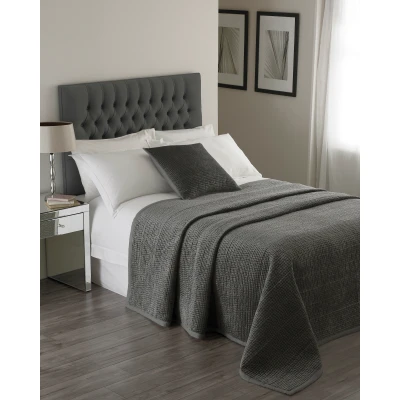 Add a sensational, warm and cosy finishing layer to your bed with the beautiful graphite Brooklands bedspread. The supremely soft material uses a sumptuous graphite grey colourway to suit most home interiors. The fabric features a delicate, velvet-look, quilted design, textured in such a way that is catches the light from every angle. This opulent bedspread has linen bordering for a stylish finishing touch to your bed. Team with the matching Brooklands cushion to create a breath-taking bedroom display. Treat this bedspread with care and dry clean only to keep it looking as good as the day you bought it.