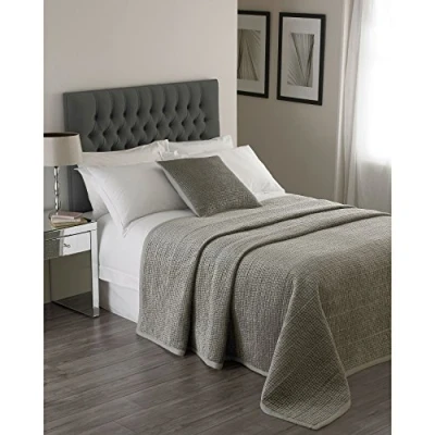 AmazonThe luxurious Brooklands bedspread features a velvet feel quilted design. Complete with a linen border for that extra touch of opulence. A super soft 100% cotton reverse and overall heavyweight design makes this bedspread a dream come true. This gorgeous bedspread is dry clean only and cool iron appropriate.