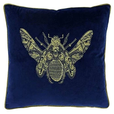 Featuring a beautifully detailed, embroidered gold Bee with matching piped edges Presented on super soft velvet fabric In richly opulent colours Made of 100% polyester these cushion covers are hard-wearing and don't stain easily Insert not included. Cushion cover will fit size 50 x 50cm (20" x 20") inserts or try slightly larger For extra plumpness Dry clean only. Tumble dry on A low setting and iron as appropriate