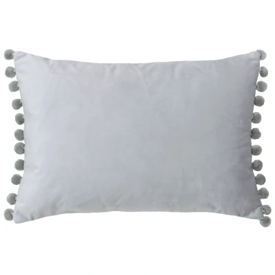 Riva Paoletti Fiesta Rectangular Cushion Cover Dove Silver Pompom Edges Faux Velvet Reversible Zip Closure 100% Polyester 35 x 50cm ( 14" 20" inches)