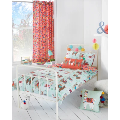 Riva Paoletti Kids Llamarama Toddler Duvet Cover Set Multicolour Mint Green Reversible Llama Design 1 x Pillowcase Included PolyCotton Machine Washable 120 150cm (47" 59" inches)