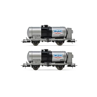Rivarossi HR6607 FS, 2 unit set tank axle wagons, big tank, with + without brakeman's cab, Mobil, ep. III 1:87 Scale HO Gauge