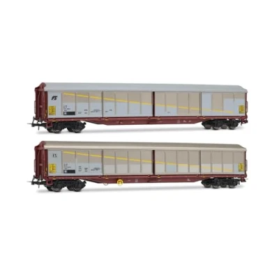Rivarossi HR6673 FS, 2 unit pack Habils closed wagons, silver/brown livery, inclined + rounded FS logo, ep. V for adults, 14+ years, model railway collectors