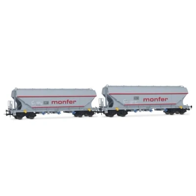Rivarossi HR6677 I ERSA, 2 unit pack flat sided cereal hoppers, MONFER, grey, new inscriptions, ep. VI Rolling Stock Wagons
