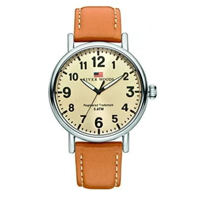 This River Woods Sacramento Analogue Watch for Men is the perfect timepiece to wear or to gift. It's Silver 42 mm Round case combined with the comfortable Brown Leather watch band will ensure you enjoy this stunning timepiece without any compromise. Operated by a high quality Quartz movement and water resistant to 5 bars, your watch will keep ticking. Precision, comfort, convenience - a good watch will give it all to you - perfect gift for any occasion -This Analogue watch has a function: Luminous Hand High quality 21 cm length and 19 mm width Brown Leather strap with a Buckle Case diameter: 42 mm,case thickness: 9 mm, case colour: Silver and dial colour: Beige