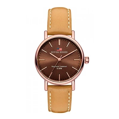 This River Woods Oswego Analogue Watch for Women is the perfect timepiece to wear or to gift. It's Rose Gold 34 mm Round case combined with the comfortable Brown Leather watch band will ensure you enjoy this stunning timepiece without any compromise. Operated by a high quality Quartz movement and water resistant to 5 bars, your watch will keep ticking. Get all the comfort of leather with this leather band -This Analogue watch has a function: Luminous Hand High quality 19 cm length and 14 mm width Brown Leather strap with a Buckle Case diameter: 34 mm,case thickness: 9 mm, case colour: Ip-rosé and dial colour: Brown