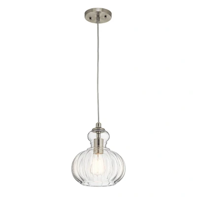 The Riviera 1 Light Pendant in Brushed Nickel adds a contemporary touch to your lighting design. Its sleek glass shade beautifully diffuses light, making it a perfect fit for various settings in your home.