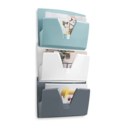 Wall basket for storing mail or other documents. Holds documents up to 24 x 32 cm. Cut-out on the sides for inserting very large A3+ envelopes, drawing tube. Large V-opening allows an excellent grabber of documents. The baskets can be attached as a step or separately (screws + dowels included).