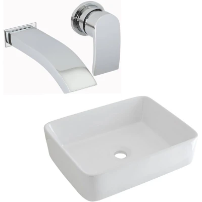General description Create a modern and stylish look in your bathroom with the contemporary Milano Rivington rectangular countertop basin and wall-mounted mixer tap set. Perfectly combining smooth lines and rounded corners, the basin is made from premium quality ceramic with an easy-to-clean white glaze and can be installed on a worktop or vanity unit. Complementing the elegant aesthetic is the durable solid brass tap, which benefits from a stunning chrome finish and a single lever handle to allow adjustment of the temperature and flow of water. Technical specifications Dimensions: 480mm x 370mm x 130mm (basin) Dimensions: 173mm x 222mm x 60mm (tap) Material: Ceramic basin with hard-wearing white coating Tap material: Solid brass Certification: Basin certified to EN14688 Warranty: Covered for 10 years Compatibility and accessories Requires an unslotted or universal waste and bottle trap