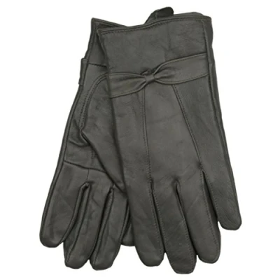 Rjm Ladies Lined Sheepskin Leather Gloves With Bow Grey Medium/Large