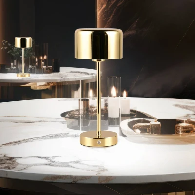 RL LIVE YOUR LIGHT Reality Leuchten Jeff R59151103 LED Battery Powered Table Lamp Polished Metal Brass with 1.5 Watt 4 Way Touch