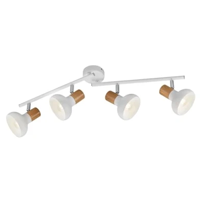 Latika 4 Light Spot Bar Metal Matt White Wood Look Light fixture without bulb. Recommended bulb 4x E14 max. 10 Watt The lamp has a width of 71 cm, the spotlights have a diameter of 10 cm Spotlights can be rotated and rotated so that the fixture can be used in different ways No bulb included
