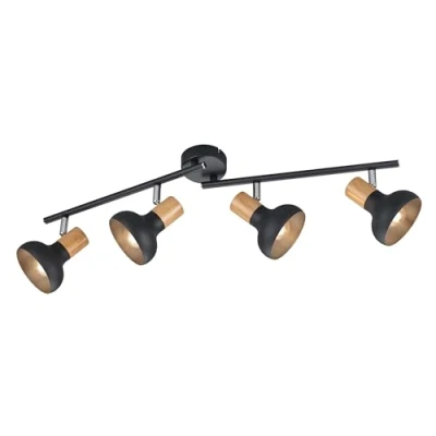 RL LIVE YOUR LIGHT Reality Leuchten Latika Beam R81524032, matt Black Metal, Synthetic Wood, excl. 4X E14