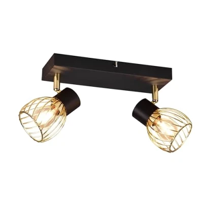 Ardon spot bar 2 flames in matt black metal with golden metal shade Light fixture without bulb. Recommended bulb 2x E14 max. 10 Watt Spotlights can be rotated and rotated so that the fixture can be used in different ways Kein Leuchtmittel im Lieferumfang enthalten
