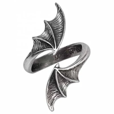 Ro Rox Alchemy England Goethe Wrap Ring Night Nocturnal Grave Lost Lover Creature Gothic Wing, Silver, W Y