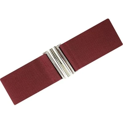 Ro Rox Florence Vintage Belt Elasticated For Women Retro Wide Nurse 50's Style With Stretch Ladies Belts Dresses Silver Buckle, Burgundy, M
