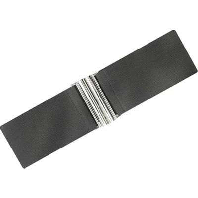 Ro Rox Florence Vintage Belt Elasticated For Women Retro Wide Nurse 50's Style With Stretch Ladies Belts Dresses Silver Buckle, Charcoal Grey, L