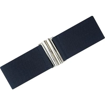 Ro Rox Florence Vintage Belt Elasticated For Women Retro Wide Nurse 50's Style With Stretch Ladies Belts Dresses Silver Buckle, Navy Blue, M
