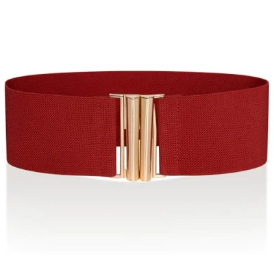 Ro Rox Florence Vintage Elasticated Belt for Women Retro Wide Nurse 50's Style with Stretch Ladies Belts Dresses Gold Buckle, Red & Gold, S