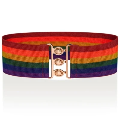 Ro Rox Rainbow Elastic Waist Belts for Women Wide Stretch Cincher Belt Nurse Style Closure, Retro Pride Belts, Gold Buckle, M
