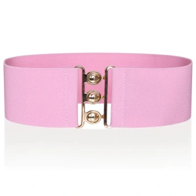 Ro Rox Retro Vintage Elastic Belt Women's Accessories 50s Nurse Stretchy With Silver Buckle & Clasp Waist Belts for Dress Wide Elasticated Design Women, Baby Pink Gold, L