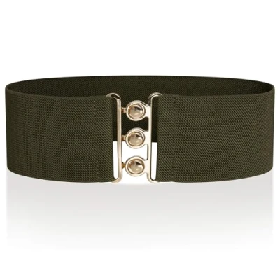 Ro Rox Retro Vintage Elastic Belt Women's Accessories 50s Nurse Stretchy With Silver Buckle & Clasp Waist Belts for Dress Wide Elasticated Design Women, Khaki Gold, S