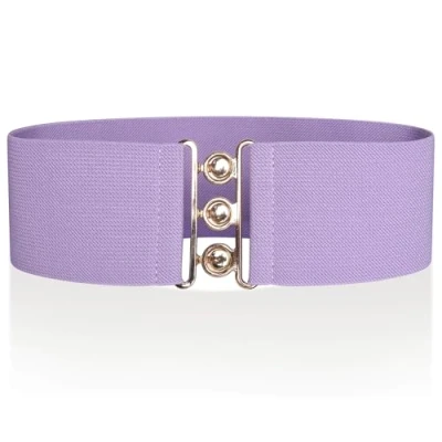 Ro Rox Retro Vintage Elastic Belt Women's Accessories 50s Nurse Stretchy With Silver Buckle & Clasp Waist Belts for Dress Wide Elasticated Design Women, Lavender Gold, S
