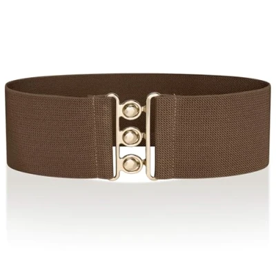 Ro Rox Retro Vintage Elastic Belt Women's Accessories 50s Nurse Stretchy With Silver Buckle & Clasp Waist Belts for Dress Wide Elasticated Design Women, Light Brown Gold, M