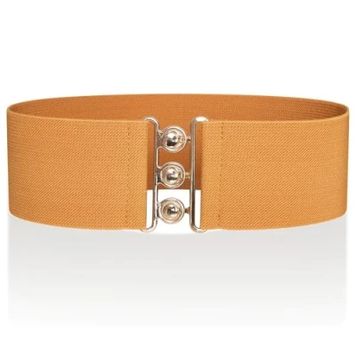 Ro Rox Retro Vintage Elastic Belt Women's Accessories 50s Nurse Stretchy With Silver Buckle & Clasp Waist Belts for Dress Wide Elasticated Design Women, Mustard Gold, L