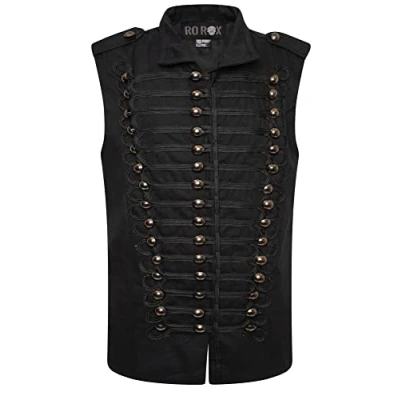 Ro Rox Sleeveless Jacket Mens Goth Cotton Uniform Military Parade Vest Waistcoat Black (3XL)