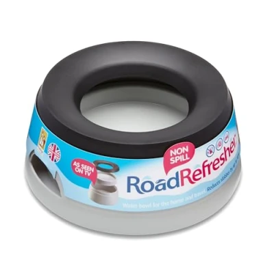 ON-THE-GO: Includes velcro fasteners for own attachment - Secures base of the bowl to just about any surface! The unique no-skid base and no-slopper combination make it the ideal item for use in cars, RV's, boats, and any other outdoor/ travel activity Reliable performance EASY, SAFE & CLEAN: Finished with smooth rounded edges, the Road Refresher pet bowl is made from BPA-free, heat resistant polypropylene, making it durable, lightweight, steady and efficient. Its purposeful design makes it easy to fill, clean and take on the go as needed. Dishwasher (top rack) safe