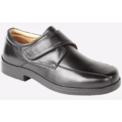 Roamers have innovated the classic black leather shoe, making comfort a priority with their Freeport Extra Wide shoes, boasting features such as a leather lining and sock and padded ankle collar, meaning you never have to sacrifice comfort for style again. - Softie Leather Upper - Hook and Loop for secure fastening - Leather quater lining and sock - Padded ankle collar - Deep toe box - Intricate stitching - PU Sole - - PU Sole