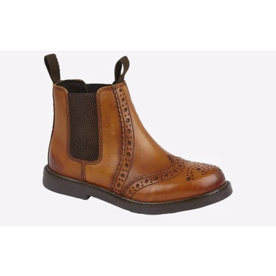Roamers Johnny Boys Leather Brogue Chelsea Boots Tan UK 12 (Junior)