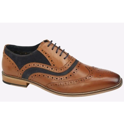 Roamers Mens 5 Eyelet Leather Brogue Oxfords (9 UK) (Tan/Blue)