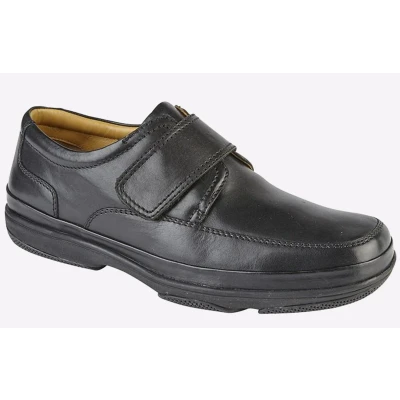 Roamers Wallace Mens Burnished Leather Wide Fit Casual Shoes Black