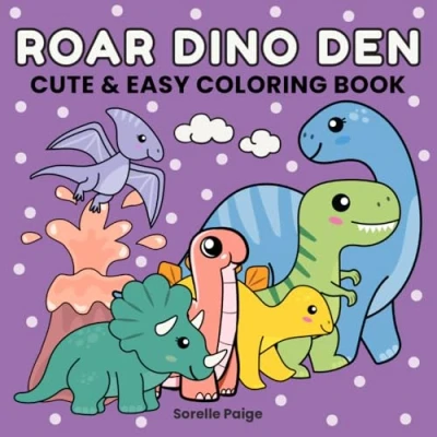 Roar Dino Den: Cute and Cozy Dinosaur Coloring Book for Kids Adults Featuring Relaxing, Easy Designs, Stress Relief Pages