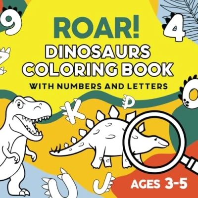 ROAR! Dinosaurs Coloring Book with Numbers and Letters: Learn Letters Dinosaurs! for Kids Preschoolers Ages 35, Digits 09, ... Discover Dino Facts Little Explorers