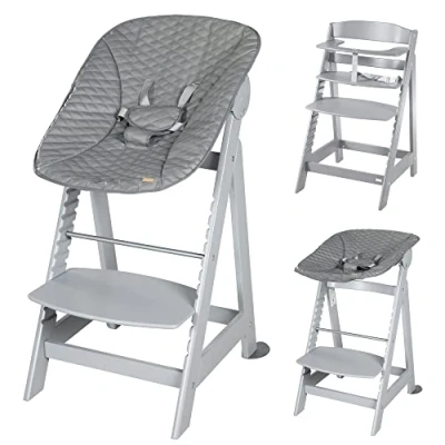 roba Born Up Stair High Chair Set 2 in 1 Stone Quilted with Reclining Function from Birth