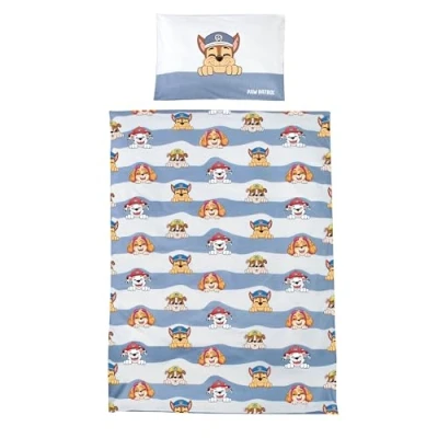 HIGH-QUALITY CHILDREN'S BEDDING: Bedding 100x135 cm for children in Paw Patrol design - Perfect for little fans of the series heroes - Fantastic set for decorating children's rooms for girls & boys SOFT COTTON: Use of high-quality, gentle cotton fabric - Easy cleaning at an eco-friendly 40° degrees in the washing machine - Cozy textiles for a dreamy sleeping experience PEPPA PIG TEXTILE: Adorable motif from the popular animated series - Print featuring the dogs Marshall, Chase, Rubble & Skye - Suitable gift for children for birthdays, Easter, or Christmas SPECIFICATIONS: Duvet cover: H 135 x L 100 cm - Pillowcase: H 40 x L 60 cm - Closable with buttons - Material: 100% cotton - Colors: White / Blue - Suitable for children's beds 60 x 120 or 70 x 140 cm EXPANDABLE COLLECTION: Can be combined with other furniture, toys, and textiles from the roba series in the Paw Patrol motif - Available additions: Toddler bed, toy shelf, toy chest, children's seating group, play tent, and much more